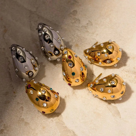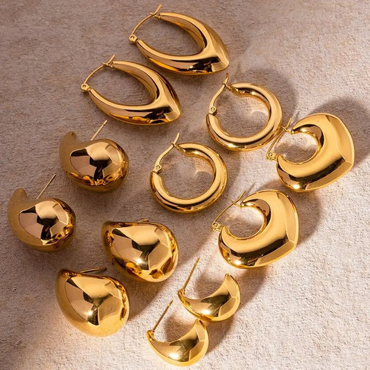 Chunky 18K Gold Plated Tear Drop Punk Earrings