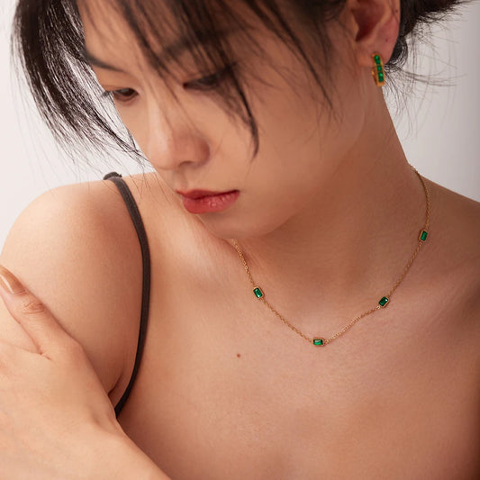 14K Gold Plated Green Cubic Zirconia Rectangle Choker Necklace
