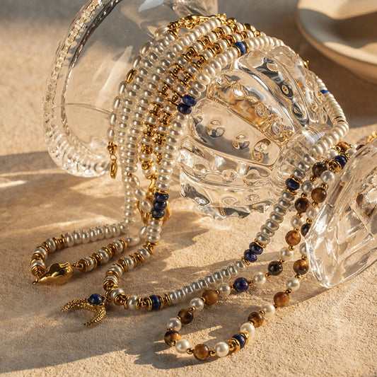 Elegant Natural Pearl and Lapis Lazuli Necklace